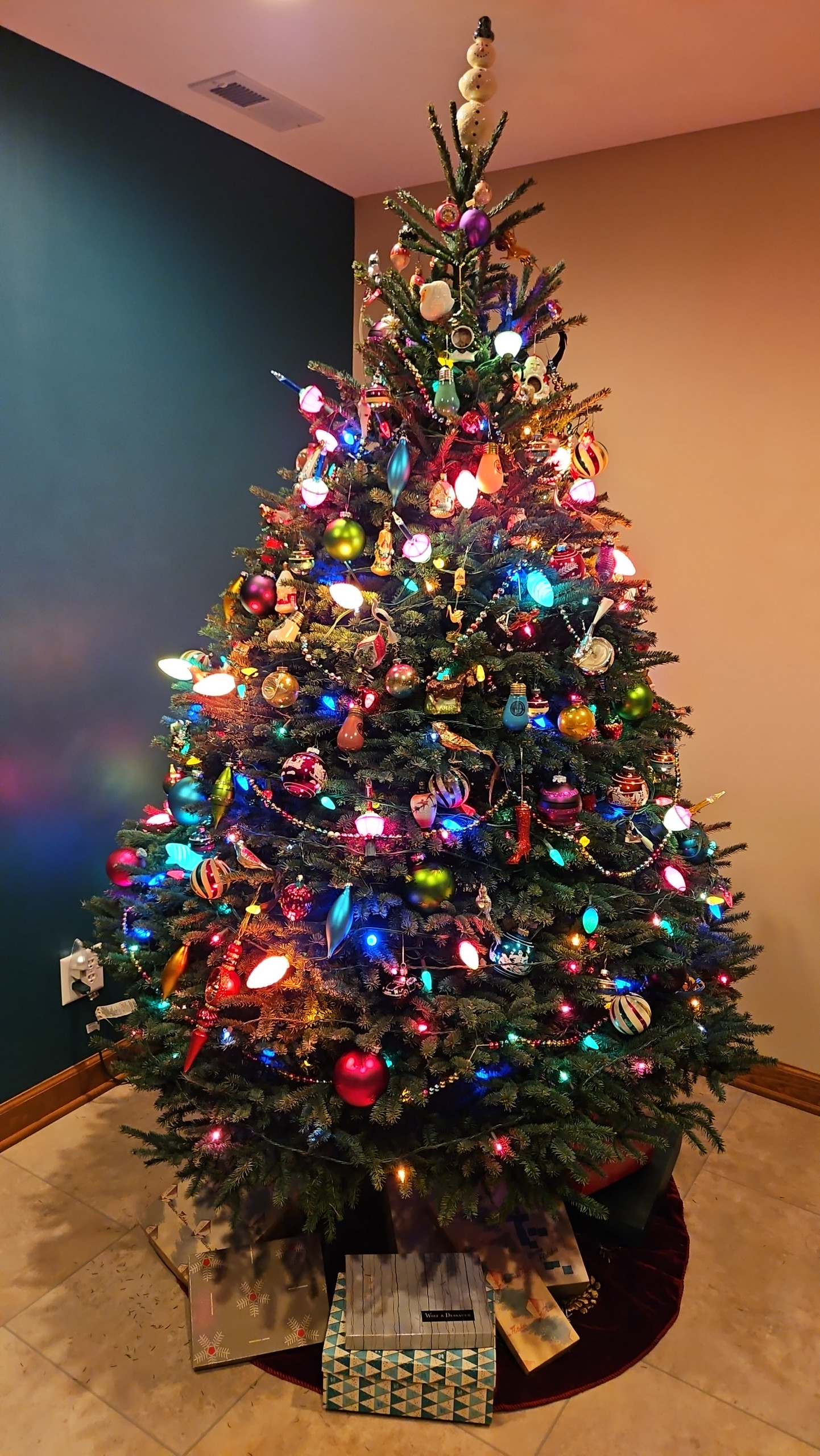 While some people decorated with a theme in mind, others were all-inclusive. “No theme, just a little bit of every type,” AiFL writes of this lush tree.
