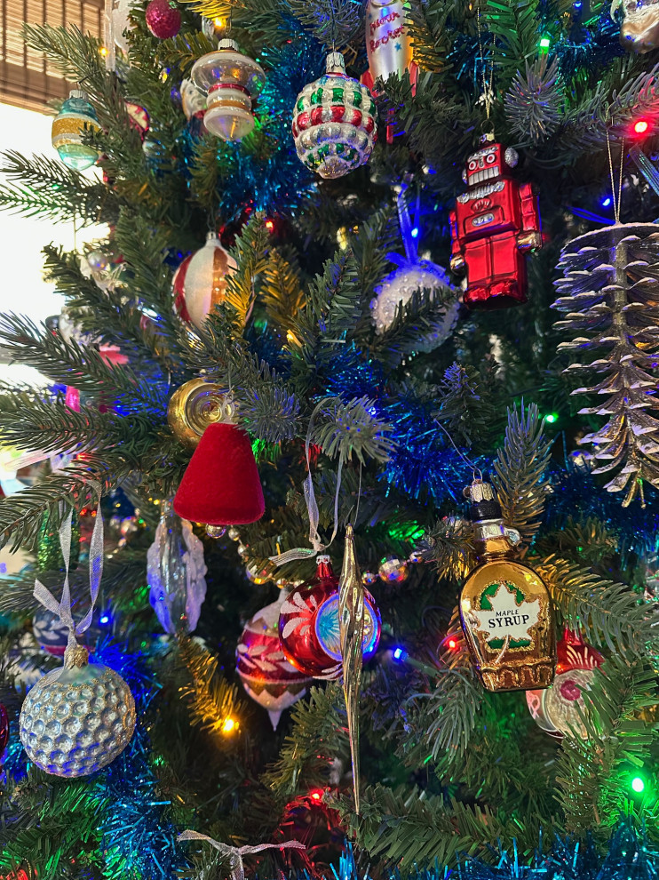 “Our tree is filled with a little bit of everything: Shiny Brites, vintage finds, beachy pieces, spaceships, souvenir ornaments, and everything in between,” writes Houzz user seisenhauer1. “We love our tree, and it makes me happy every year to see the items we’ve collected.”