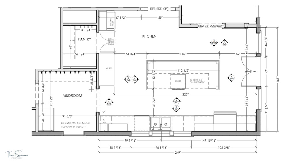 Floor plan: The addition appears on the right side of the plan, with the dining room above the opening at the top. The placement of windows, doors and the wide opening to the dining room helped determine appliance locations. Even so, the large island anchors an efficient work triangle. Ingredients can be taken from the refrigerator or pantry and set on the island, making them easy to access for rinsing, prepping and cooking.