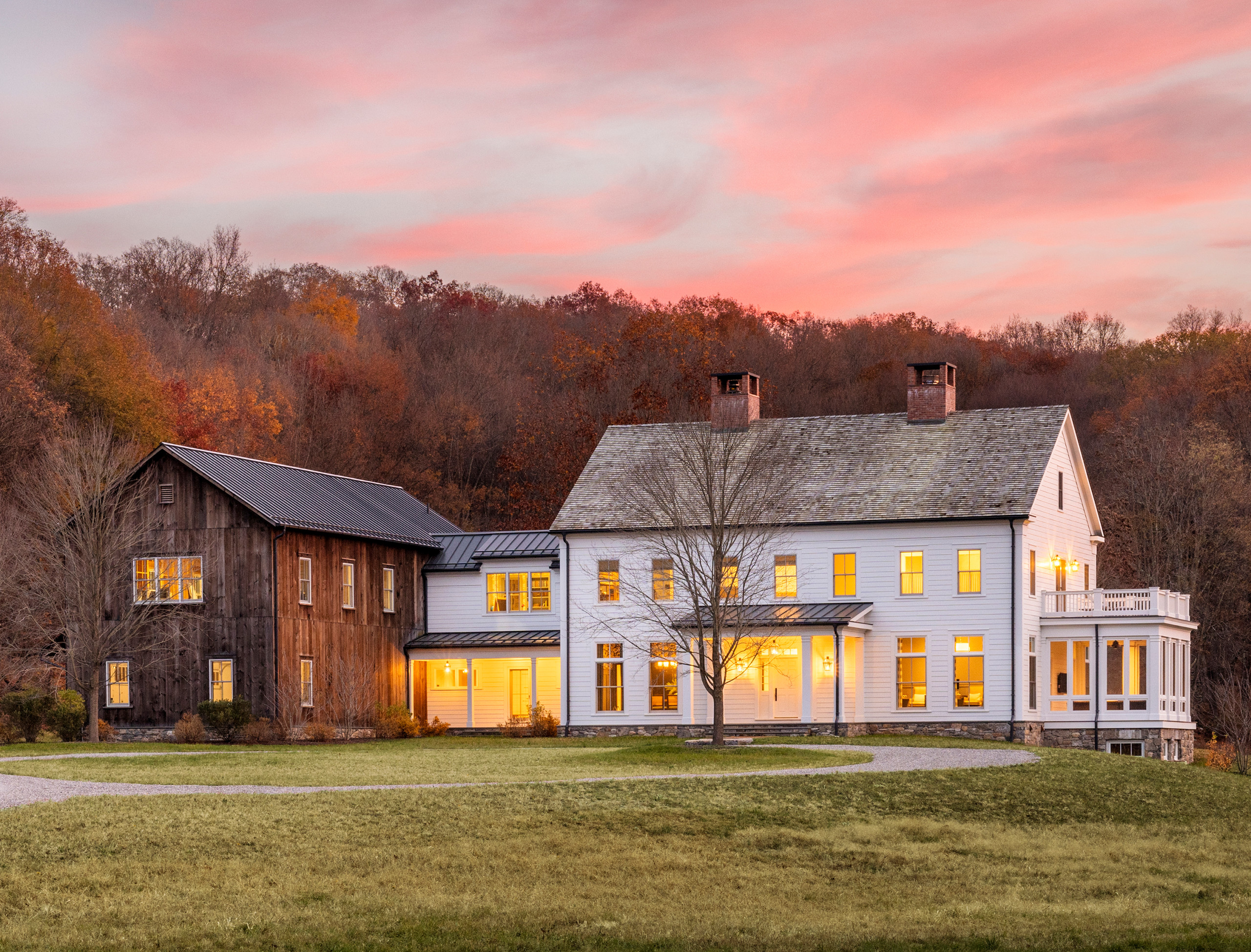 Crisp Architects, which, like many of the pros whose work is profiled here, subscribes to Houzz Pro, gave this new Dutchess County, New York, farmhouse a harmonious composition with a clever massing scheme. Porches, a two-story breezeway and a garage disguised as a barn break up the home’s large scale, while varied siding and roof materials make the new build feel like a historic home that has evolved over time.